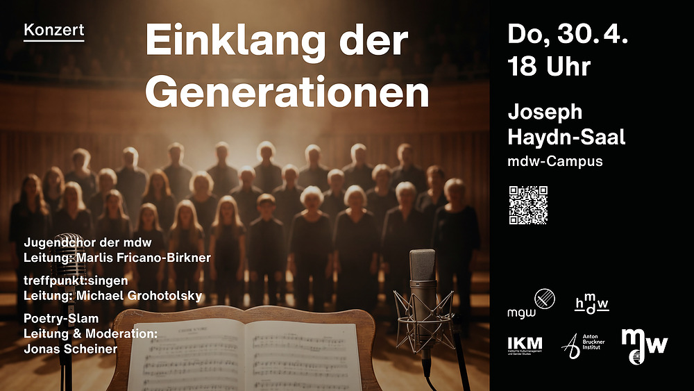 Wir freuen uns, diese erfolgreiche monatliche Veranstaltung, die allen sangesfreudigen Menschen innerhalb und außerhalb der mdw offen steht, auch im Studienjahr 2025/2026 wieder angeboten werden kann und laden herzlich dazu ein.